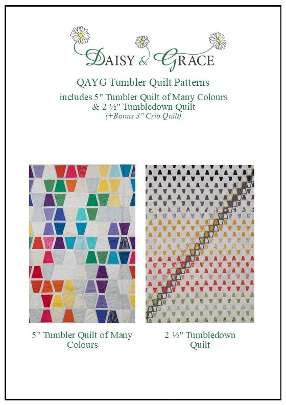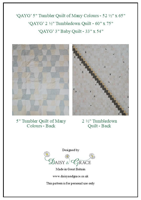 I made my first Tumbler quilt a year ago and I have been asked for the instructions, so at long last I have done that, but I have just finished yet another Tumbler quilt so I have done the instructions for that one as well, but not only are those 2 quilt patterns included I have also created another crib quilt that I want to make next so that is there as well. So 3 quilt patterns for the price of one with 3 design sheets as well to help you create more quilts.