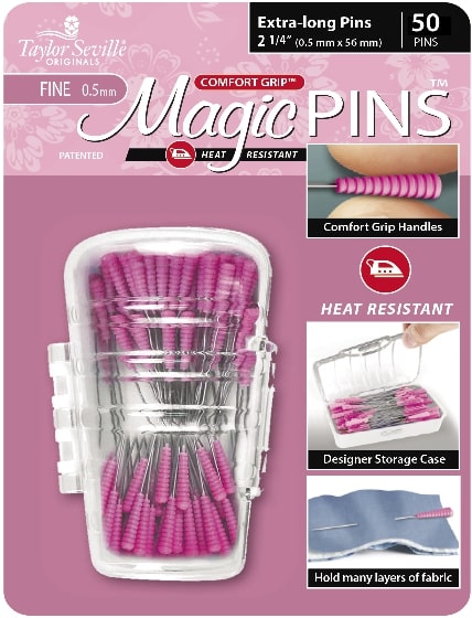 Unlike regular pins which can be difficult to find and handle, the large comfort grip handles of these Magic pins make them easy to find, pick up and remove from your fabrics.