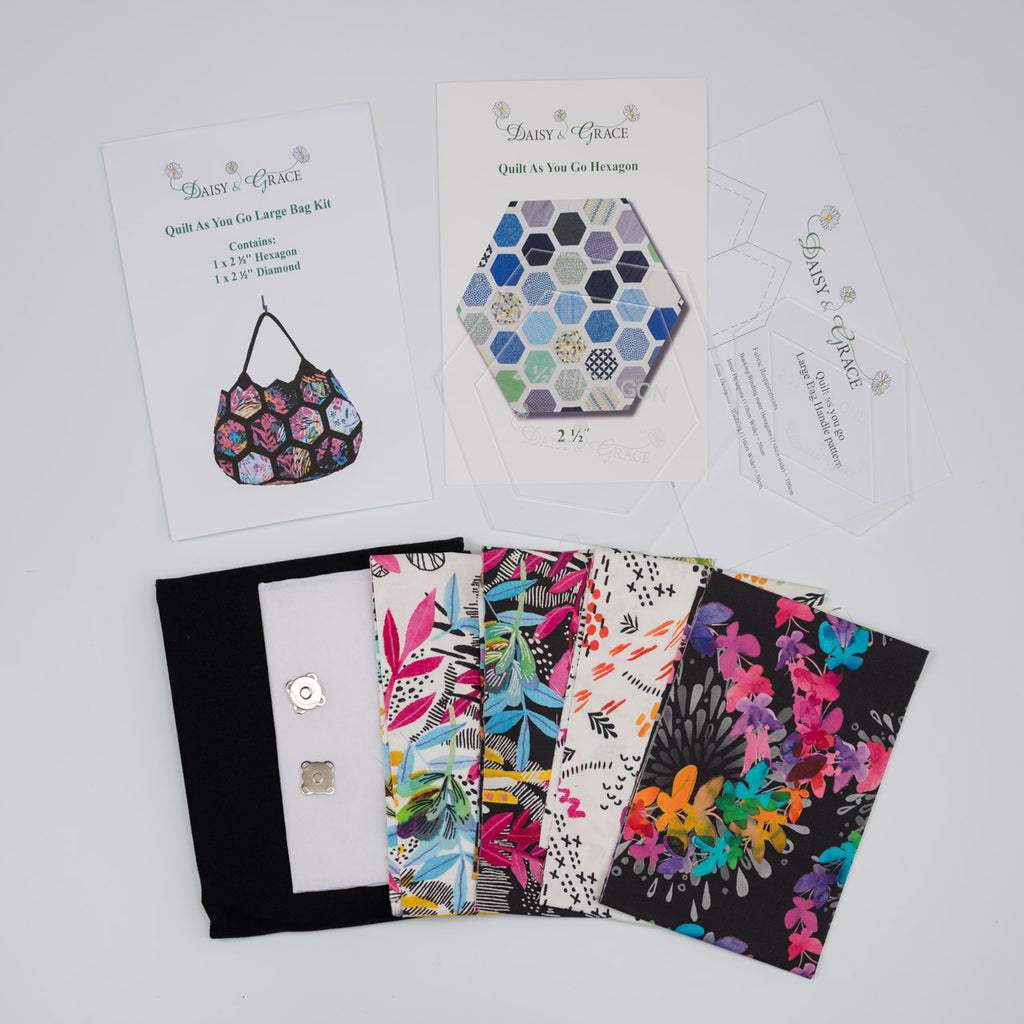 Kit for the Moda Playground Large Bag, lined in Black Plain cotton by Makower (wadding not included)