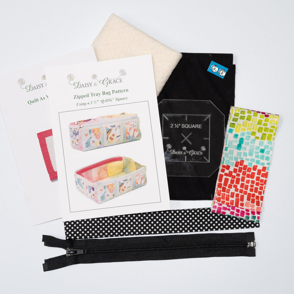 Using QAYG templates means that once all your squares are joined you don’t need a lining for your tray bag, it’s an all-in-one method.