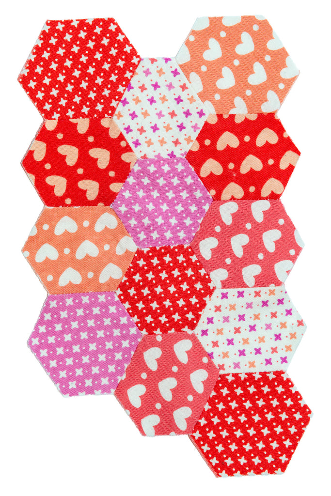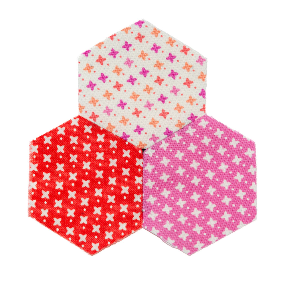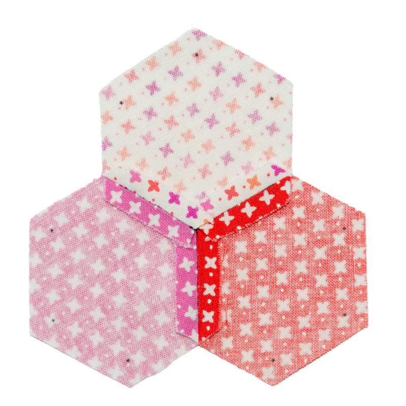 Acrylic tool, with etched ¼” seam allowances and holes to mark the corners on Hexagons, diamonds, pentagons, half hexagons, jewels and triangles