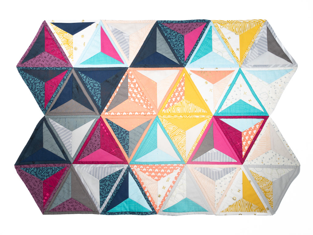 Each equilateral triangle is 7" on the side with a 1/4" seam allowance. This can be a great scrap busting project you don't need much fabric for each piece.