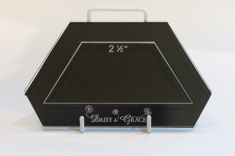 This template is suitable to be used with the large 2 1/2" Hexagon template as this will create 2 straight edges on a 2 1/2" quilt.